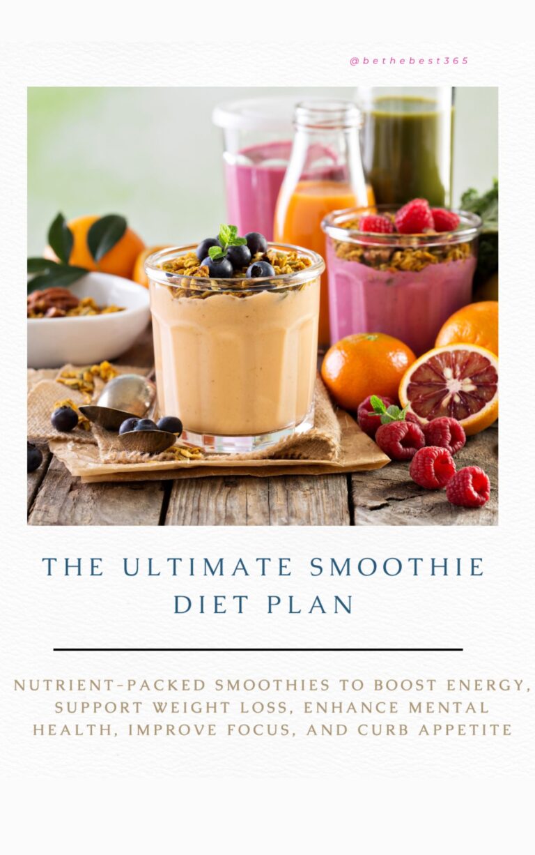 Looking for a simple, delicious, and effective way to boost energy, shed unwanted weight, improve mental clarity, and curb cravings? The Ultimate Smoothie Diet Plan is your go-to guide for transforming your health—one smoothie at a time!